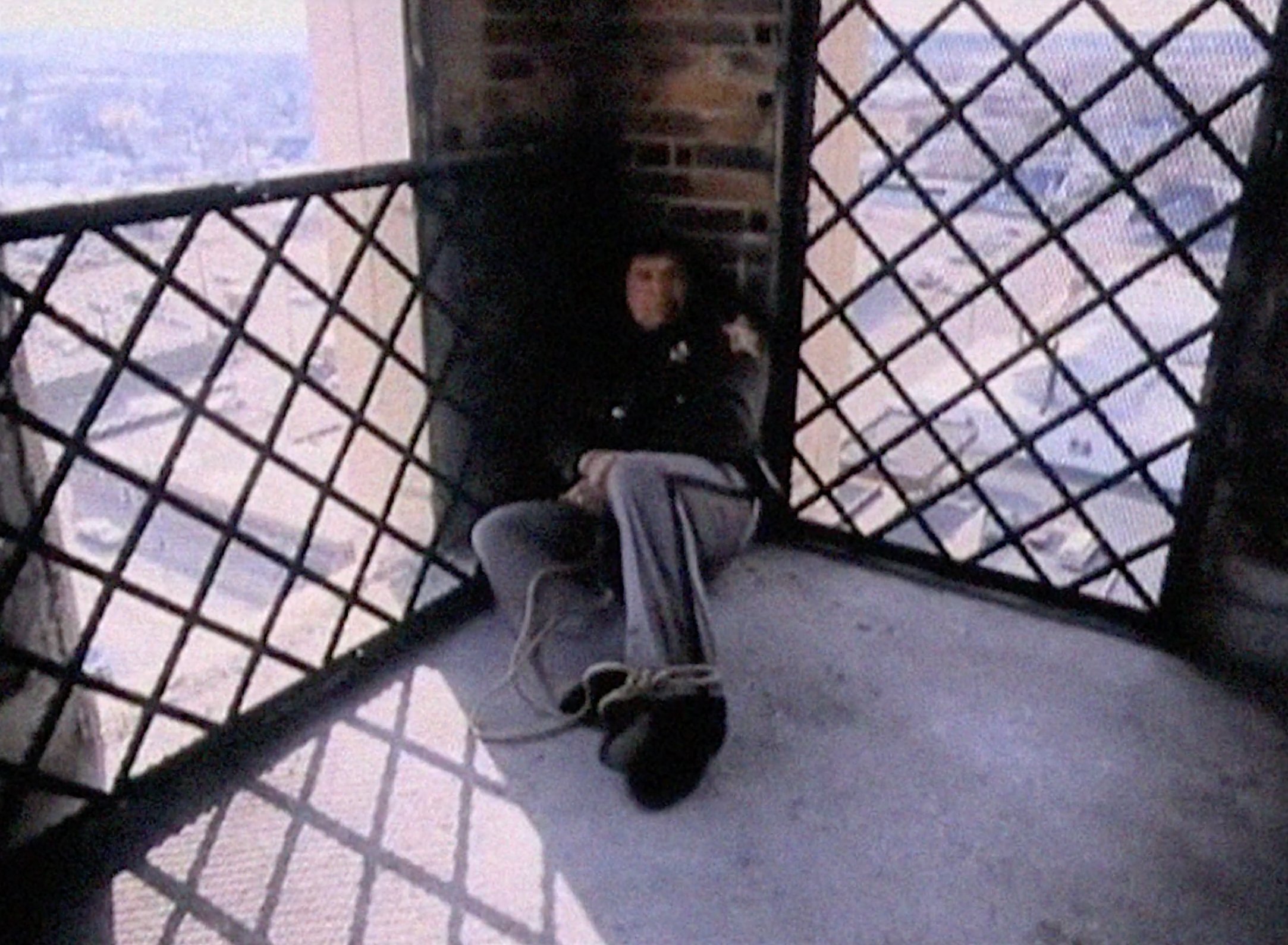 The ninja’s appearance spurs the film’s climax. The Bear attempts to shoot up the town’s annual street festival from a clocktower, an event which in itself is a contradiction of his methods, shifting from the physical confrontation of the bear hugs for which he’s named, to sniping targets in the American tradition of Charles Whitman. “One man in his time plays many parts.” This strange indirection seems to disavow the Bear’s fixation on physical contest: it suggests that this challenge was never about might, but about theatricality, and there is no greater act of participatory theatricality than attacking the audience. The Bear’s attempt at a mass murder sees him cross from the Brechtian self-consciousness of American pro-wrestling to the brutality and sadism of Fernando Arrabal and le Mouvement panique. The Bear is dispatched in a manner equally theatrical—by the sudden appearance of a masked, costumed vigilante. The ninja has stepped out of Ford’s dreams—and, it’s implied, into his body—only to vanish after saving the day, allowing Greenfield to return to normal.
